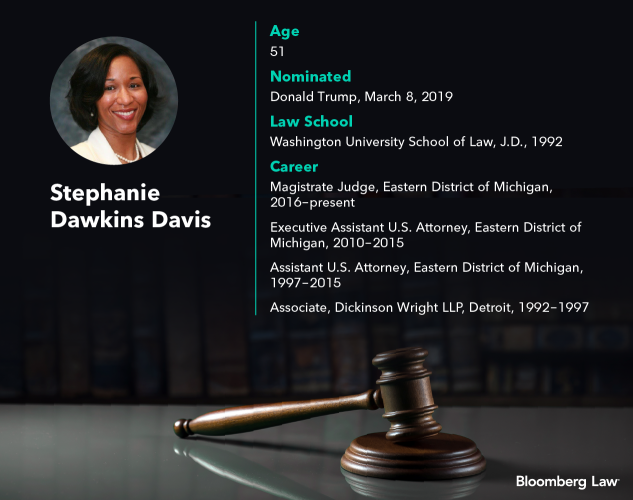 Stephanie Dawkins Davis is Donald Trump’s first black female judicial nominee, and her bipartisan appointment comes amid the contentious drive by the president and his Senate allies to reshape the federal courts.